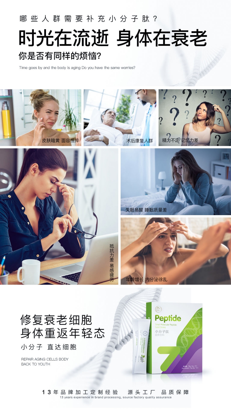 小分子肽的吸收代謝速度比游離氨基酸快,并且人體內(nèi)利用小分子肽合成蛋白質(zhì)的概率比氨基酸的利用率高約25%。