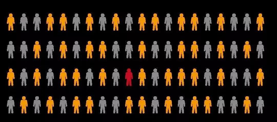 100個老人里,得類風(fēng)濕的比例(紅色)和得骨關(guān)節(jié)炎的比例(橙色)