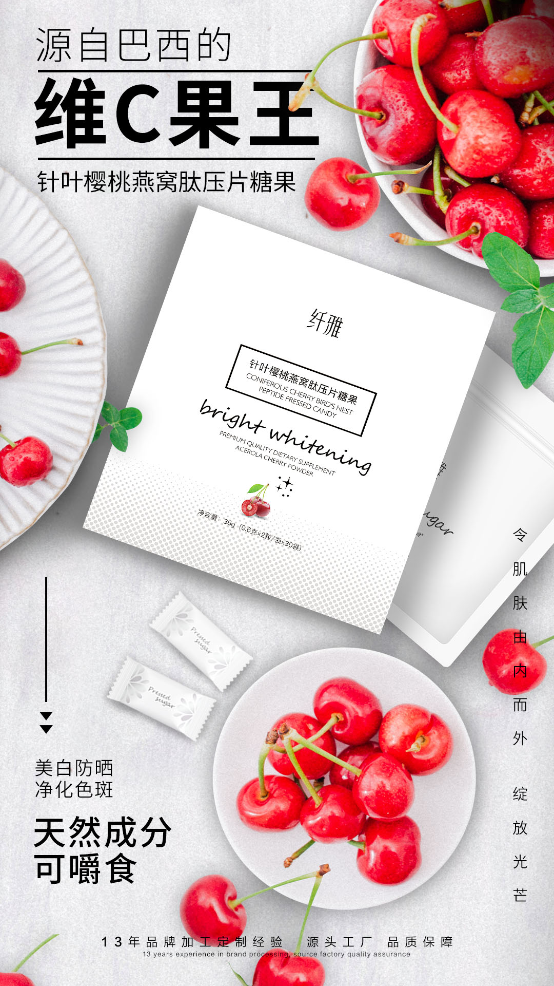 羅湖山生物特推出針葉櫻桃壓片糖果,美白淡斑去暗沉,小巧方便易攜帶,口感酸甜,適應大眾!